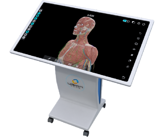 三维解剖台是一款具有高互动性和完整解剖结构的训练平台,可实现现实和虚拟的对比结合,有利于学生学习和记录,多点触控,操作上可实现对三维模型任意角度拖动、旋转、平移、缩放、结构隐藏等功能,能够实现仰视、俯视、层层透视等观察效果,各个结构都有中英文名称及语音介绍,通过手指触控操作可增强教学的生动性,提高学习效果。